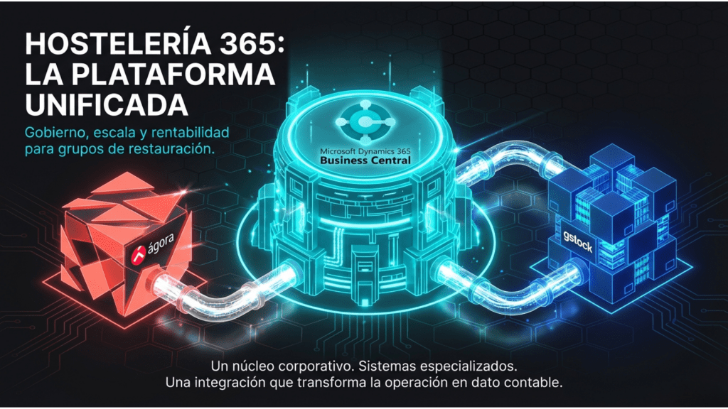 La semana pasada presentamos Hostelería 365 como un enfoque de plataforma pensado para gobernar, escalar y rentabilizar grupos de restauración. Un modelo basado en tres pilares claros: un núcleo corporativo, sistemas especializados por dominio y una capa de integración capaz de convertir la operación diaria en dato coherente y contabilidad trazable.